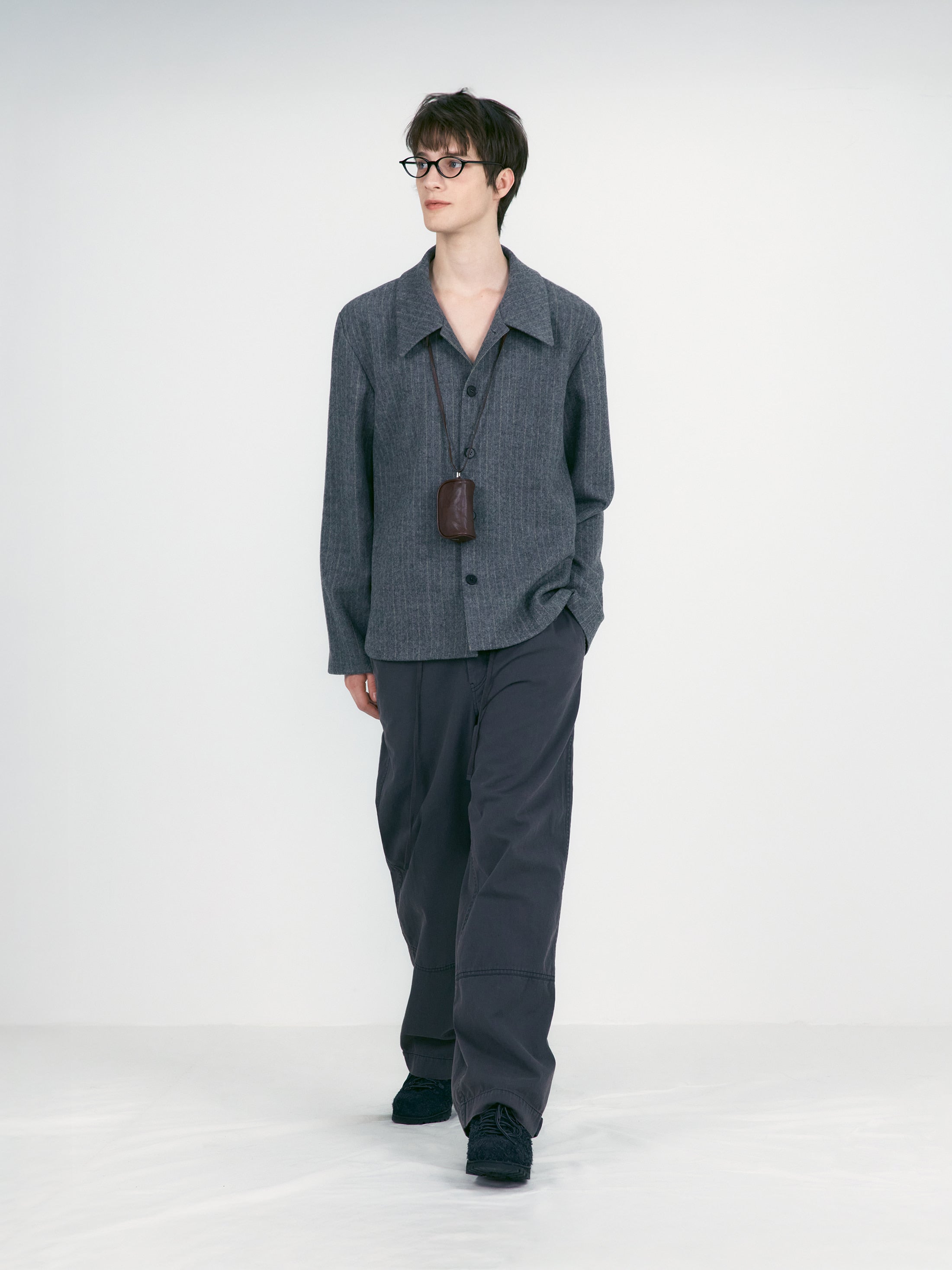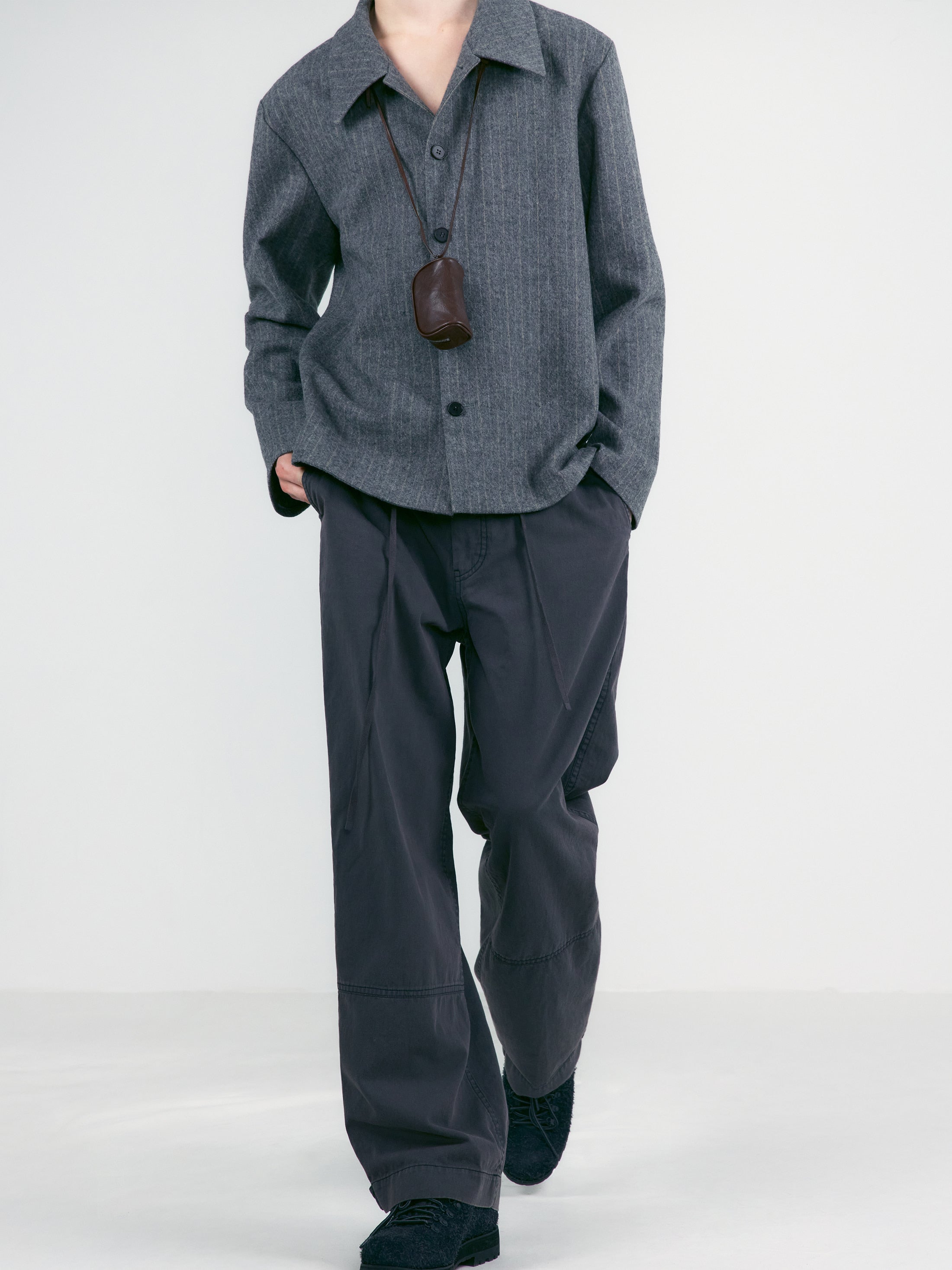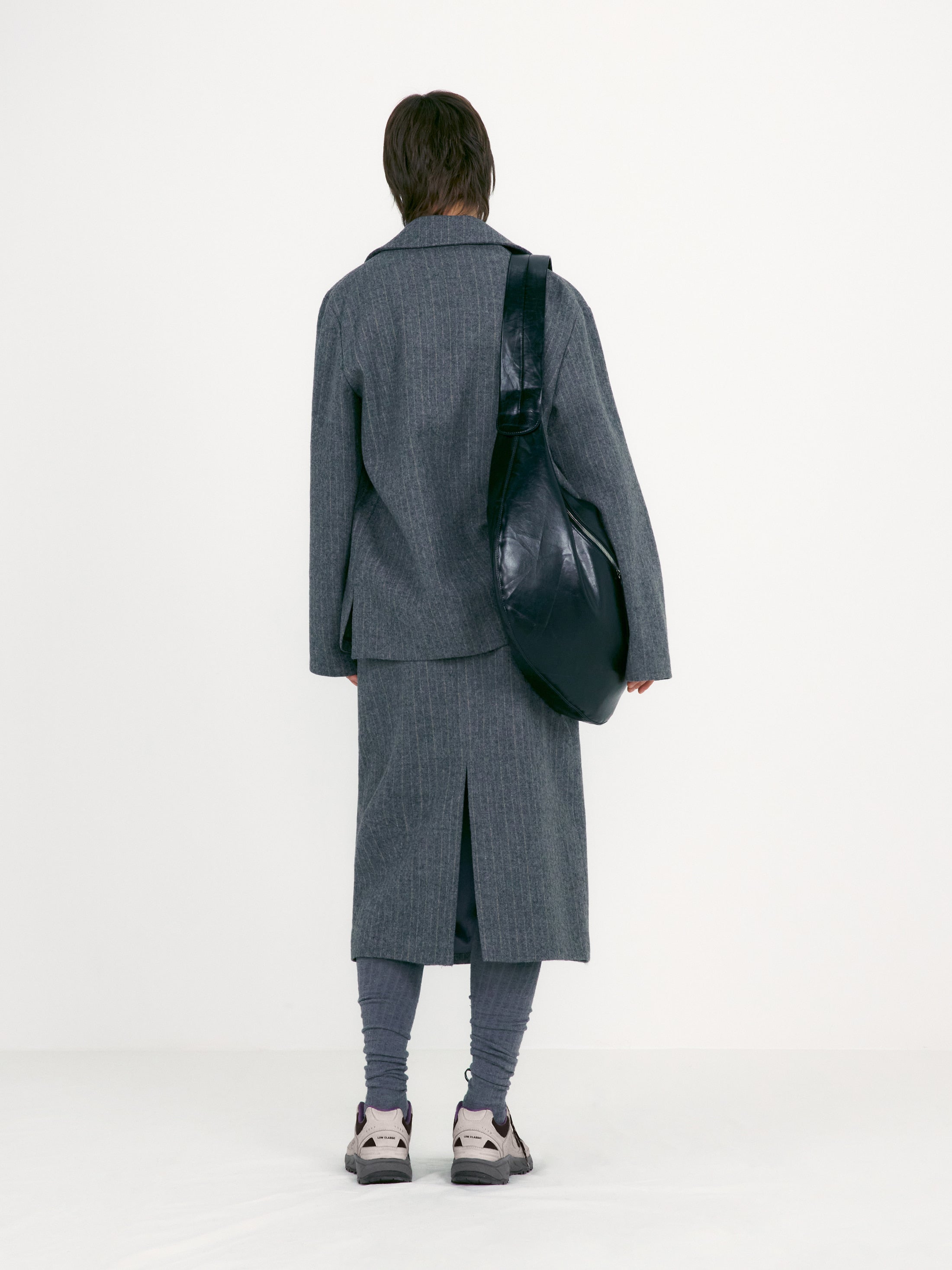 這款外套採用帶有自然條紋的羊毛材質,散發低調質感;挺拔俐落的輪廓勾勒出優雅線條。