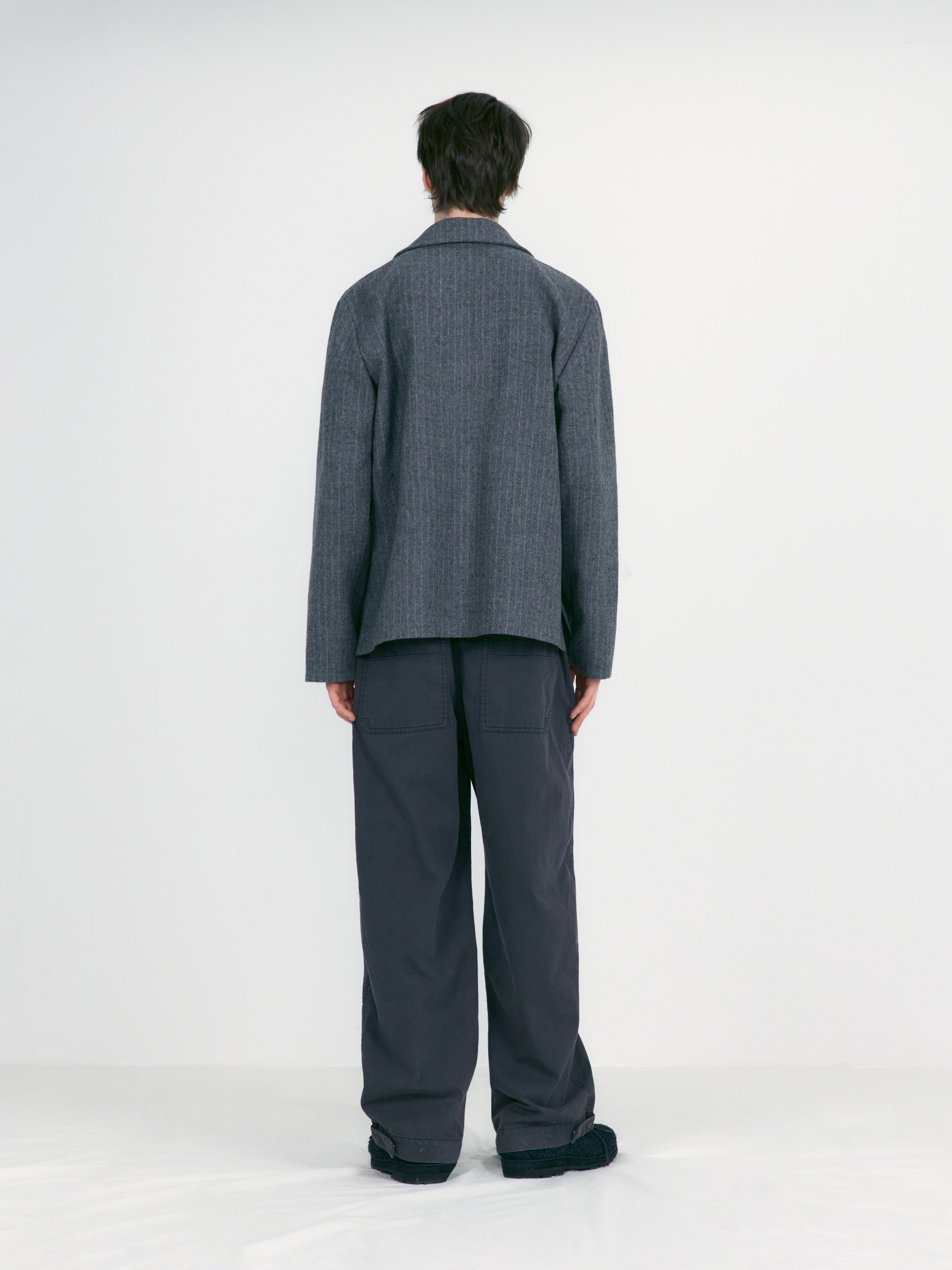 Stripe Wool Collar Jacket - Multi Striped Grey