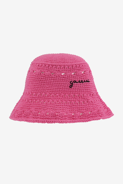 Cotton Crochet Bucket Hat Solid - Shocking Pink