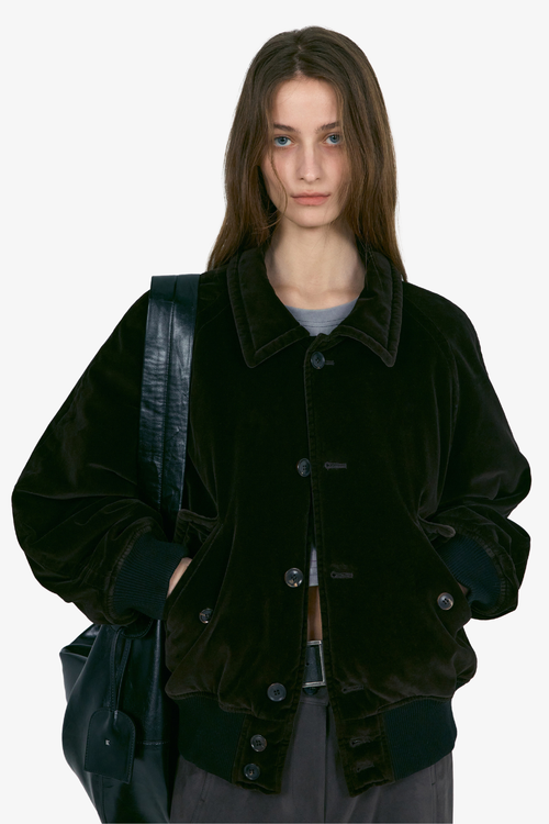 Washed Velvet Bomber Jacket - Brown