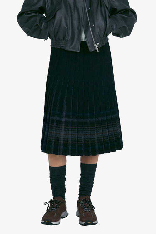 Reversible Wool Pleats Skirts - Check