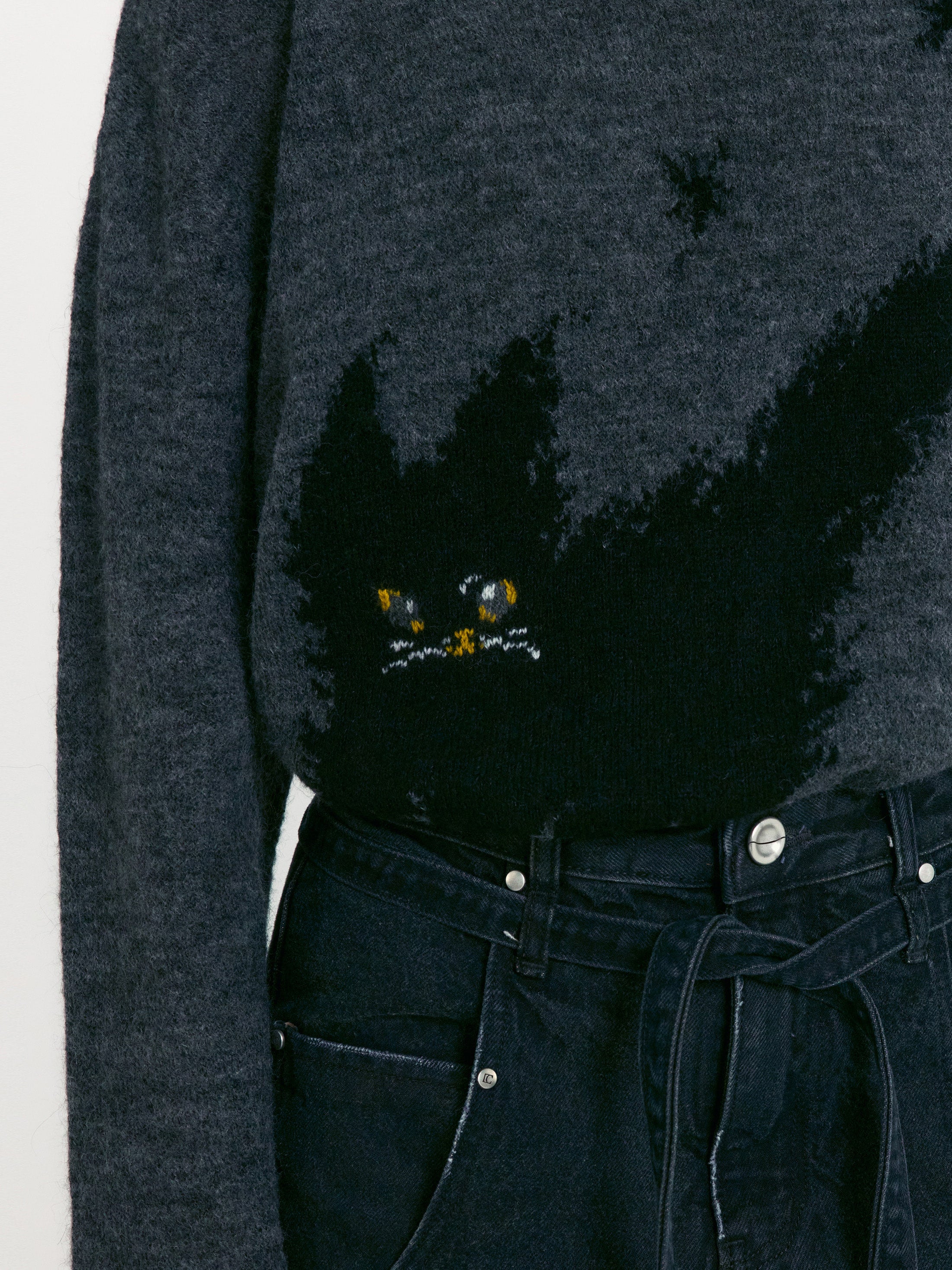 [UOU___CUTE x LOW CLASSIC] Dandelion Cat Knit - Charcoal