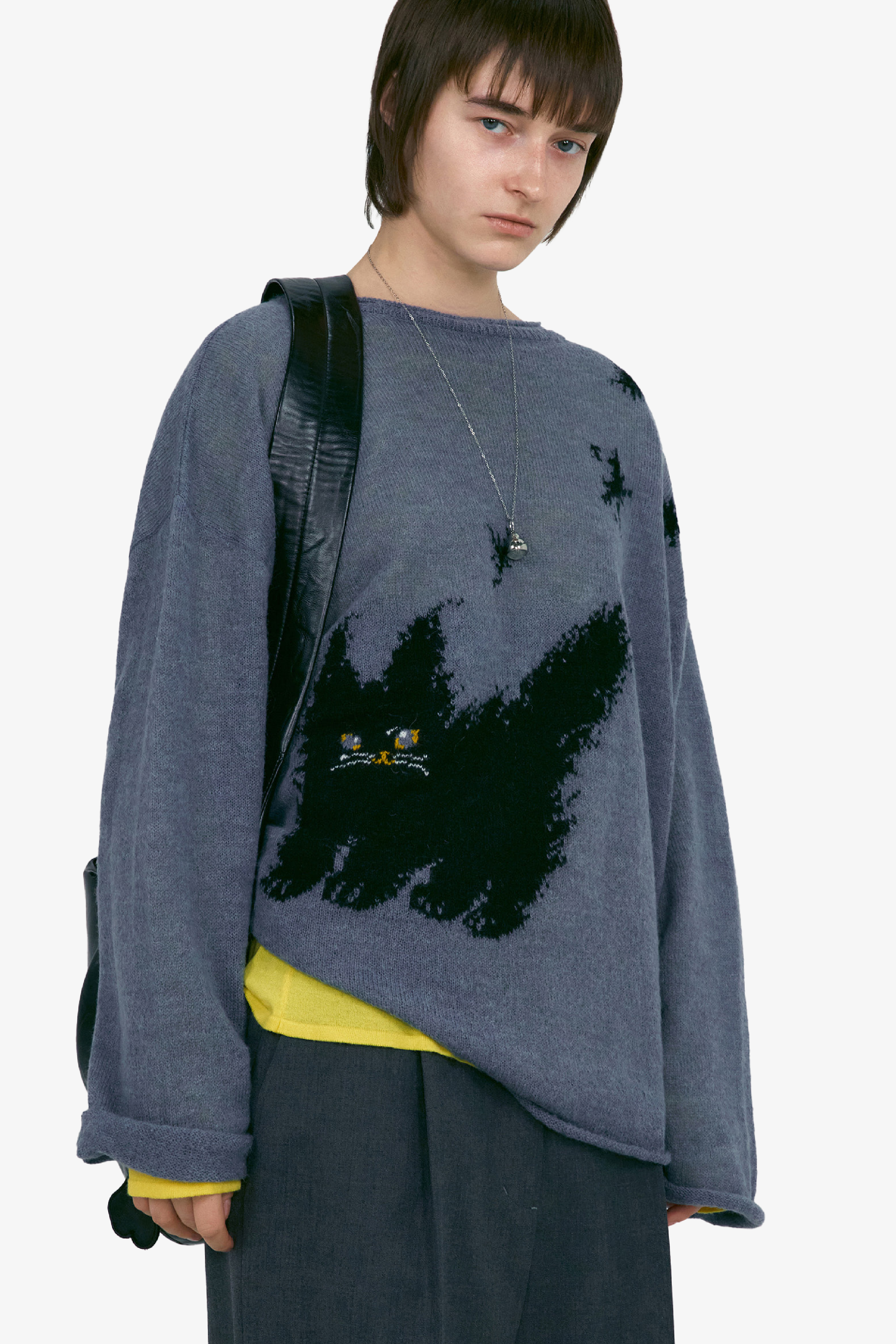 [UOU___CUTE x LOW CLASSIC] Dandelion Cat Knit - Blue