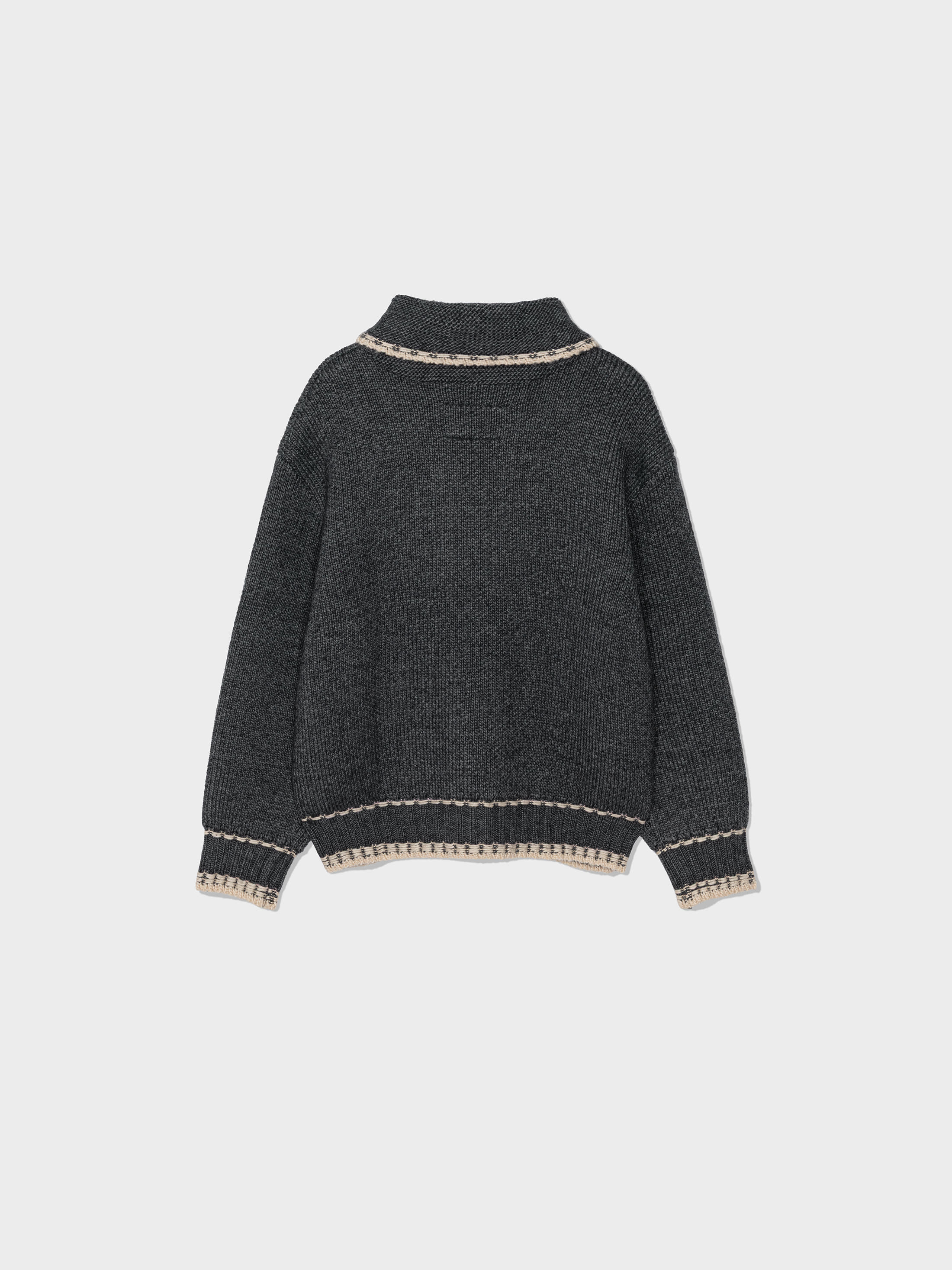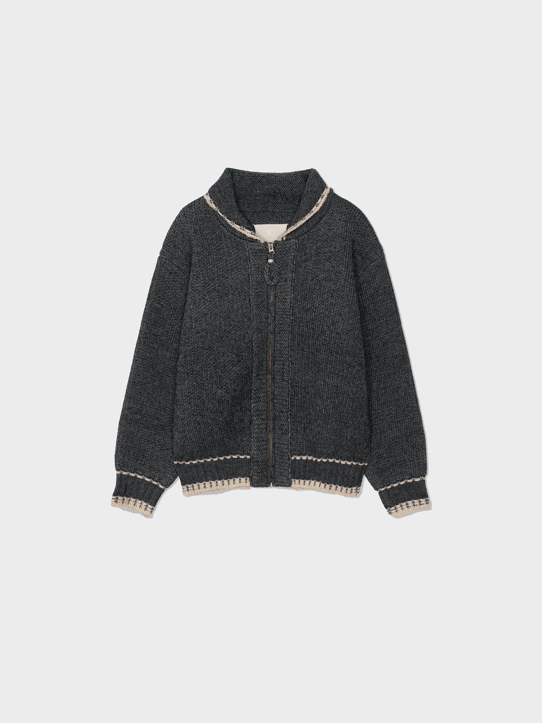 這款羊毛針織外套保暖舒適,拉鍊採用針織環形細節設計,增添俏皮趣味。領口、袖口與下擺的對比色設計,為整體增添層次感與鮮明特色,簡約中帶有巧思,輕鬆展現日常造型感。