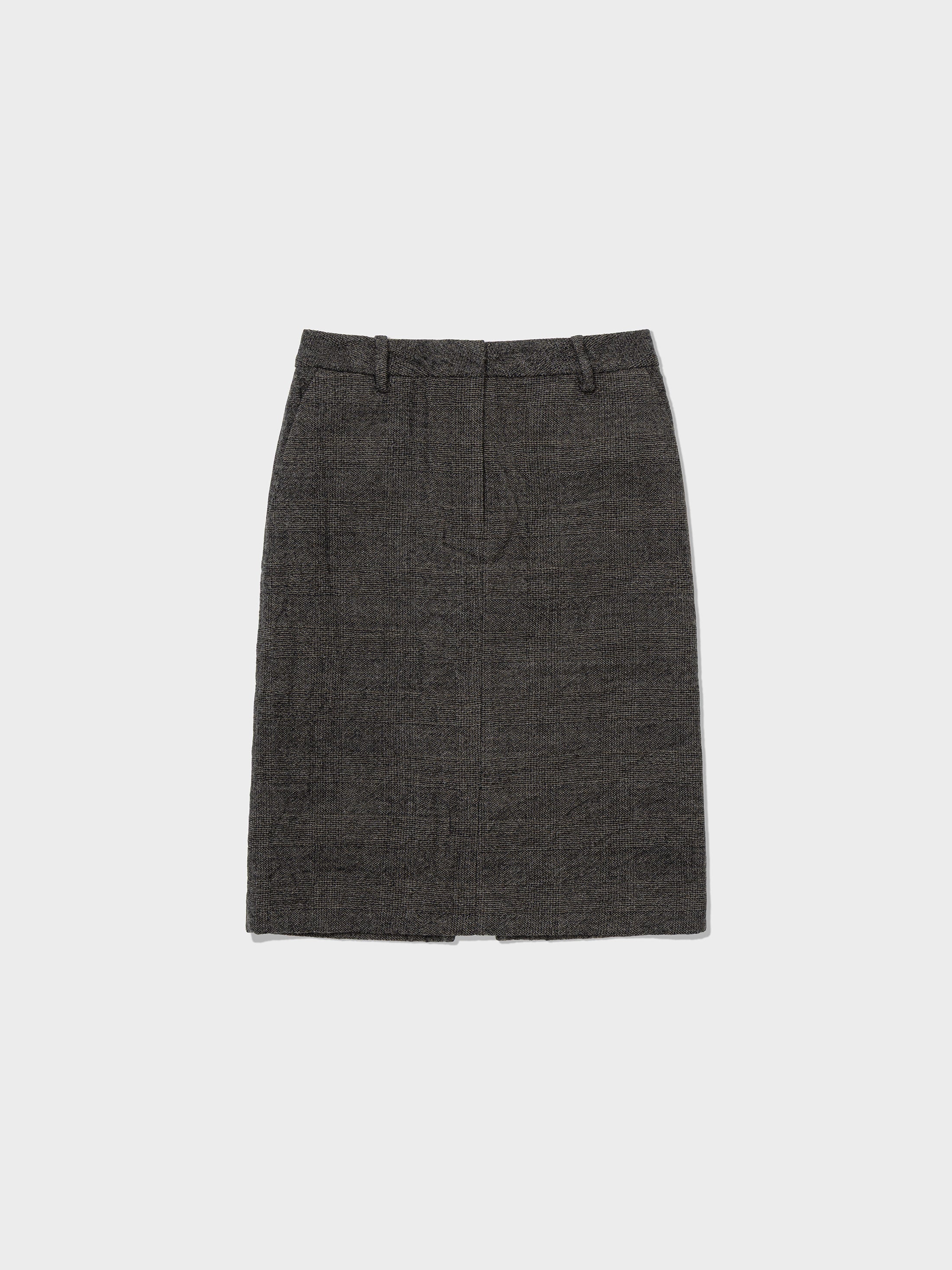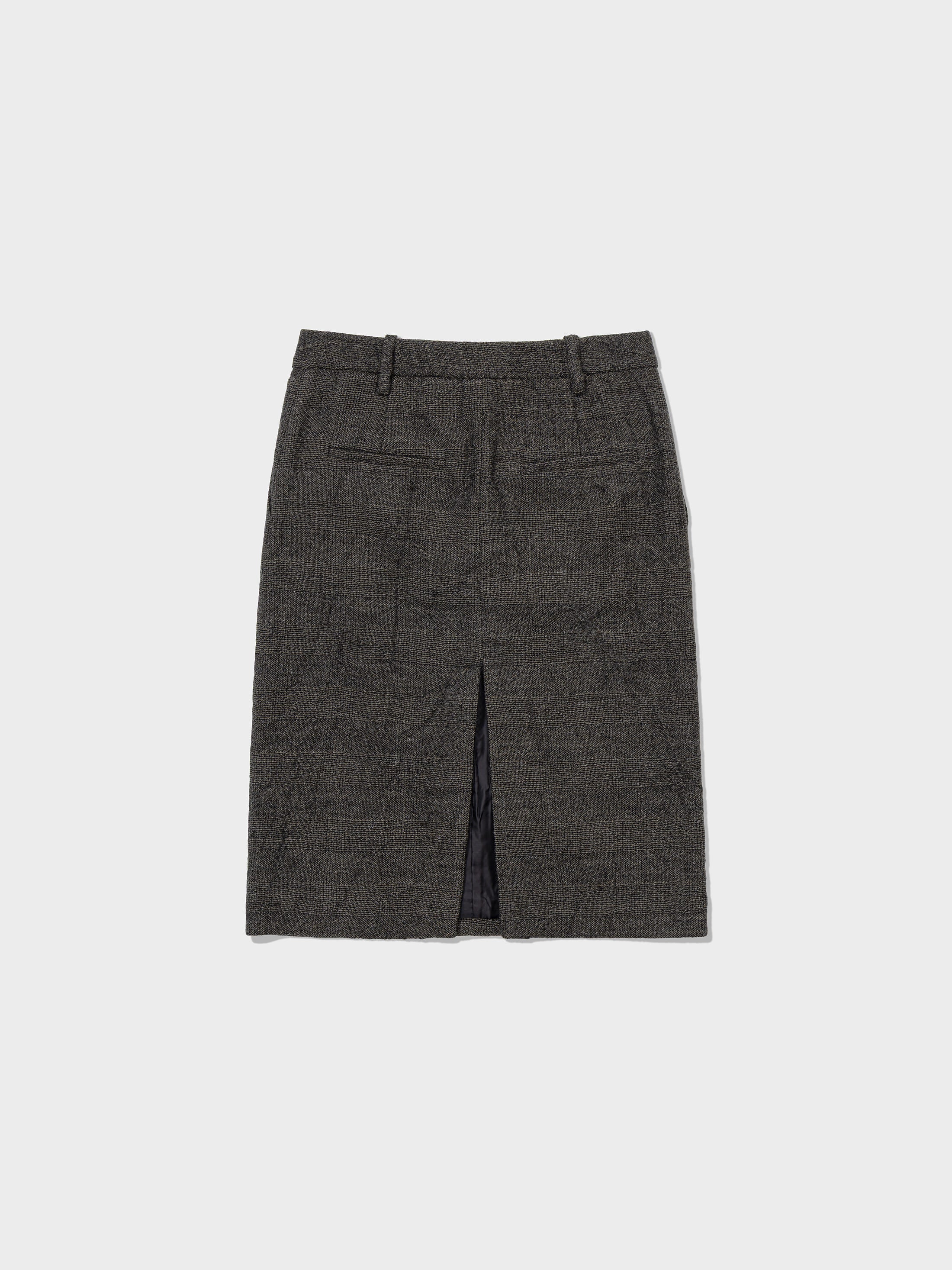 Crumpled Wool H-Line Skirts - Tweed Check Grey